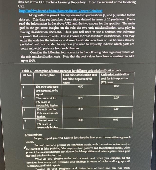 Data Set At The Uci Machine Learning Repository It Chegg Com